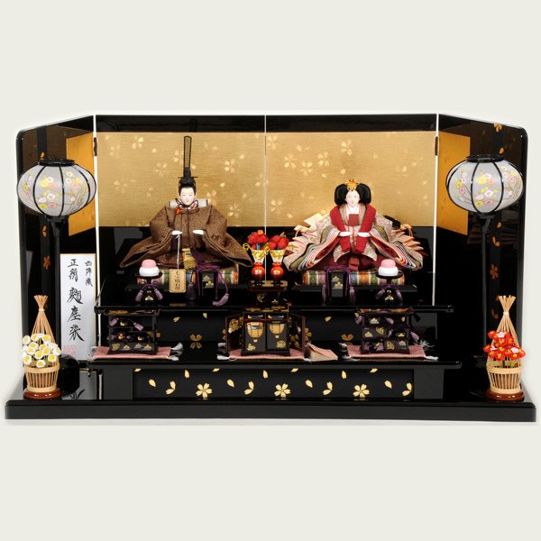 ・台座・屏風等には落ち着いた色目の雛人形セット。