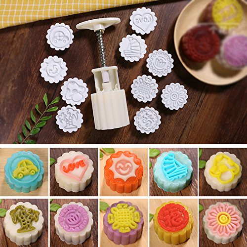 Moon Cake Mold Cookie Stamp Cutter with 10 Stamps, 50g Cookie Press Mid Autumn Festival DIY Decoration Hand Press Cake Mold