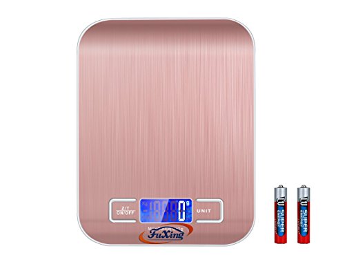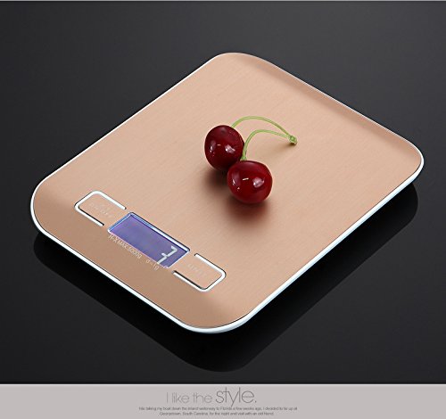 FuXing Kitchen Scales, Food Scale, Digital Jewelry Scales, Coffe Scale, Mini Electronic Pocket Scales, Accurate Gram and Slim Design Stainless Steel, Batteries Included Gold Colour