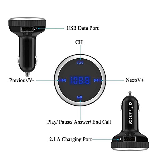 Broad compatibility : Car fm transmitter works with Bluetooth enabled devices, like iPhone, iPad, iPod, Tablet, Smartphones or MP3, MP4 Players via 3.5mm audio jack.Simply plug into cigarette lighter socket, Control directly as an FM transmitter.