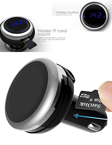 Wireless In-Car Bluetooth FM Transmitter & Car Charger,Radio Adapter Hands-Free Car Kit, Car MP3 Player with Dual USB Port Supports SD Card - Silver