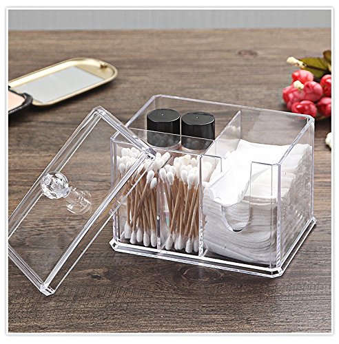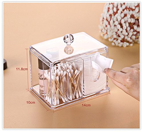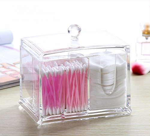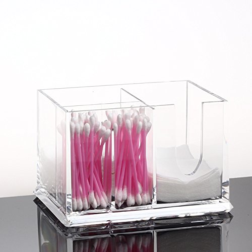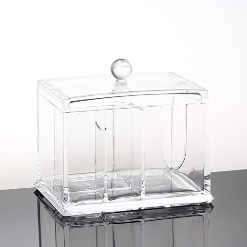 Product Description This high Quality 100% Acrylic Cotton Ball and Swab Holder is an elegant way to store cotton balls and swabs at your fingertips and it displays beautifully on your bathroom vanity. The durable lid keeps dust and dirt out of both compartments. The sleek design of the crystal-clear acrylic matches any decor, and is a safer alternative to glass in the bathroom. Comes in a full-color box, perfect for gift giving! 0