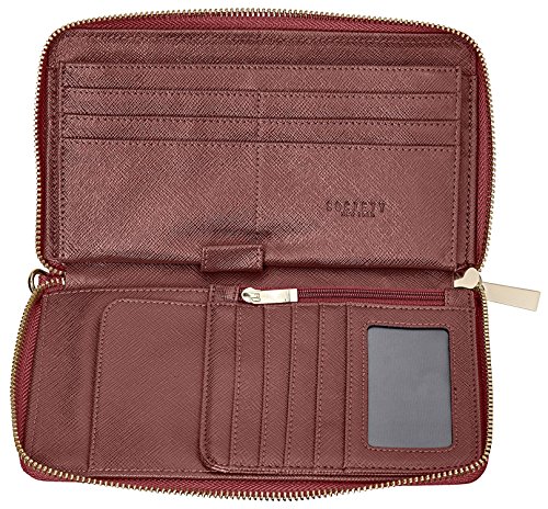 SOCIETY NEW YORK Women's Zip Around Wallet, Bordeaux
