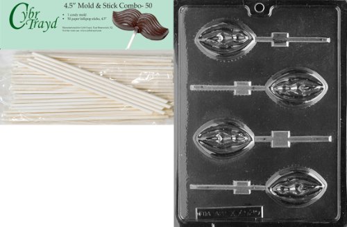 Cybrtrayd 45St50-XX525 Lady Lolly Chocolate Candy Mold with 50 Lollipop Sticks, 4.5-Inch