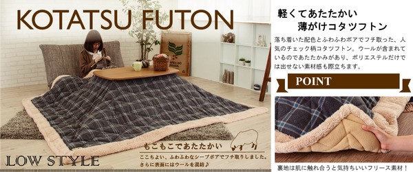 こちらはこたつ布団単品のお届けです。画像にあるこたつテーブルは別売りです。セットではございませんので予めご了承ください