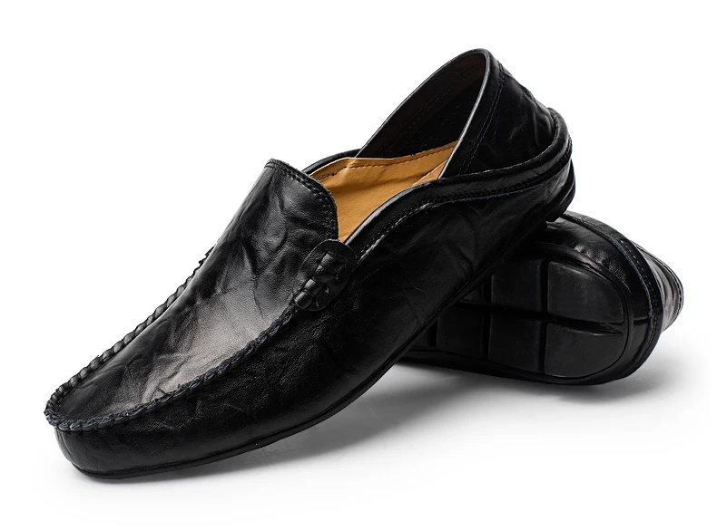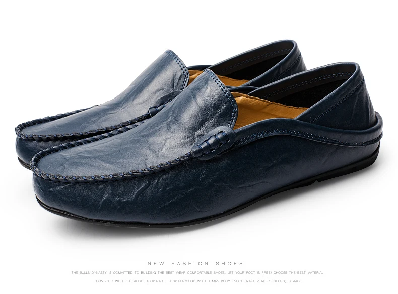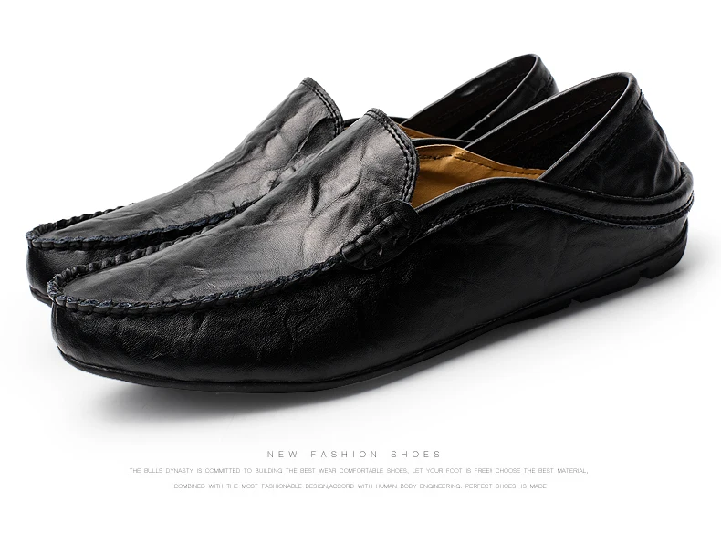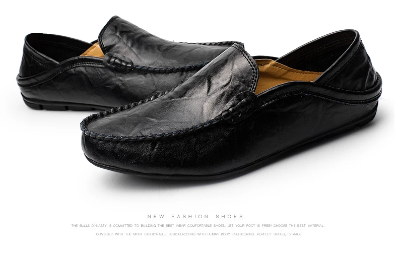 Men loafers leather:Genuine leather shoes men