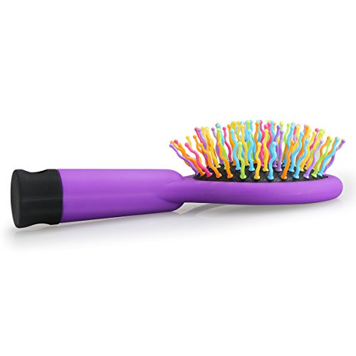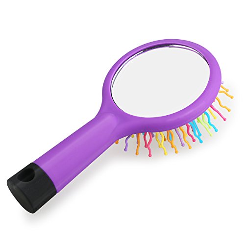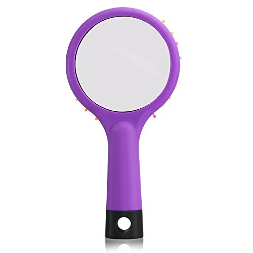 - Color: Purple. - Material: Plastic and glass. - Length: 15cm; Diameter: 7.5; Teeth: 2.5cm. - Air cushion design, gently massage of scalp, increase circulation and hair growth, improve sleep quality and prevent hair loss. - 7 rainbow colors S-Curl Wave Design, reduces the friction with hair, anti-knotted, anti-static, make comb easy in dry cold day - Works with Any hair types: thick, thin, curly, straight, wigs, dry or wet. - Keeps straight hair smooth, glossy and wavy hair roll fluffy, elegant. - With a back magic mirror for your convenience.