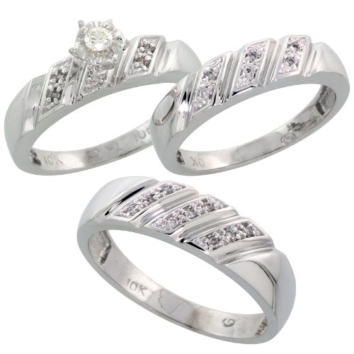 -. Title : Sterling Silver 3-Piece Trio His (6mm) & Hers (5mm) Diamond Wedding Band Set, w/ 0.15 Carat Brilliant Cut Diamonds; Ladies Size 9.5