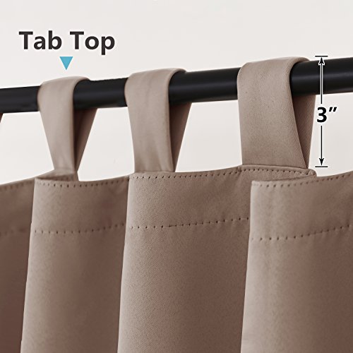 - Tab top easy to slide & not afraid of rain, enable the curtains to last long. Tab loops universal fits easily with standard curtain rods.