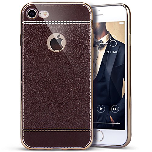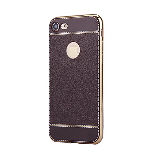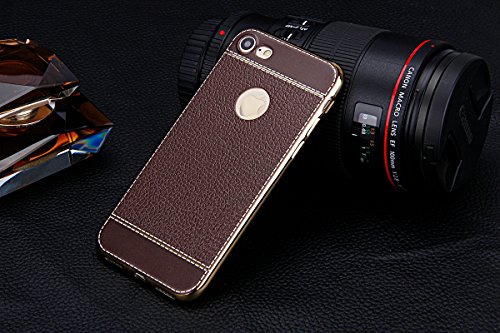iPhone 7 Case, PHEZEN Luxury Ultra Silm Fit Plating Gold Frame Hybrid TPU Soft Silicone Bumper Case and Vintage Classic PU Leather Back Case Cover iPhone 7 (2016) 4.7 inch, Dark Brown