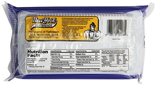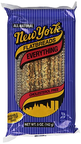 -. Binding : Grocery -. Brand : New York Flatbreads -. Feature : New York Flatbreads are made with a unique extrusion process that produces a thin, crispy, flavorful crisp bread which retains the full flavor of all the ingredients -. Label : B & G Foods -. Manufacturer : B & G Foods -. MPN : 989501 -. NumberOfItems : 12 -. PackageQuantity : 1 -. PartNumber : 989501 -. ProductGroup : Grocery -. ProductTypeName : GROCERY -. PublicationDate : 2015-01-14 -. Publisher : B & G Foods -. ReleaseDate : 2015-01-14 -. Size : 5 Ounce -. Studio : B & G Foods -. Title : New York Flatbreads Everything, 5 Ounce (Pack of 12)