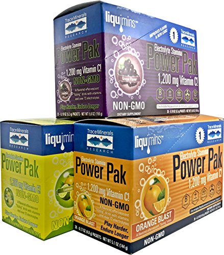 Electrolyte Stamina Power Pak Combo. 30 Lemon Lime, 30 Orange Blast, and 30 Concord Grape. Hydration, 1200 mg Vitamin C, Magnesium, Potassium, Concentrace, On the Go