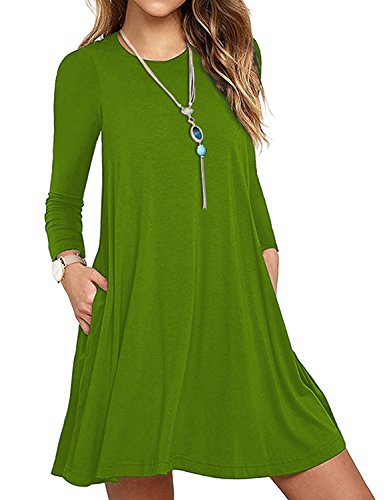 "VERABENDI Women's Long Sleeve Casual Loose T-shirt Swing Pocket Dress