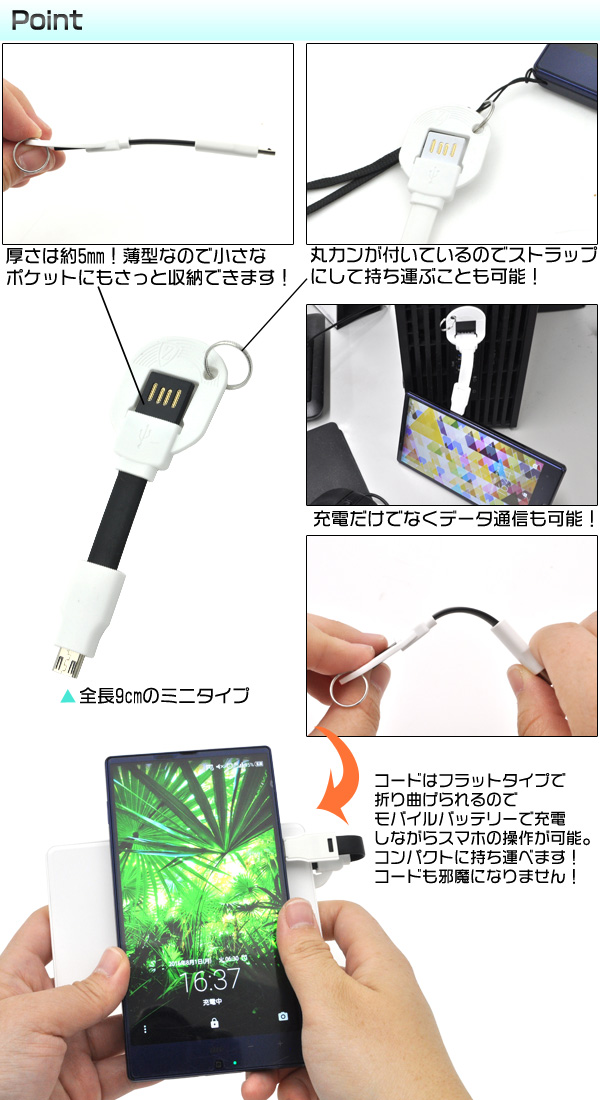 薄型で幅を取らずコンパクトに収納可能!microUSBフラットミニケーブル!