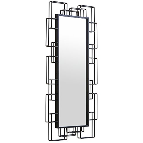 This mirror is a work of art in itself. A frame of layered black iron rectangles gives it depth and a commanding presence, while gold accents in the corners add a touch of glam. It will make a bold impression in any modern- or industrial-style room.