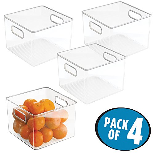 - Pack of 4 kitchen storage organizer bins are great catch-all bins to store and organize produce, meat and cheese, canned food, drink pouches, food jars, pantry items and more