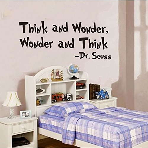 -. Title : Amaonm Removable Black Vinyl Quotes Saying "Dr. Seuss Think and Wonder" Wall Decals Lettering art Decor Wall Stickers Murals for Kids Children Boy Girl Bedroom Living room Classroom