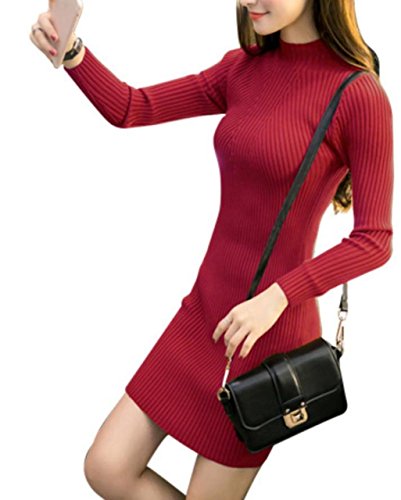 -. Title : (ビコノワール) Beconoir スッキリ シンプル ロング 丈 セーター ピッタリ フィット ミニ ワンピース ショート タートル ネック リブ レディース
