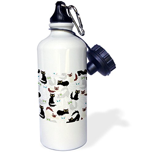 3dRose wb_110774_1 "Kawaii Cats Cute Kitty Print" Sports Water Bottle, 21 oz, White