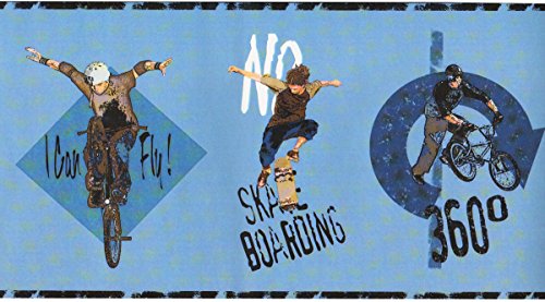 -. Feature : One wall border pack. / Prepasted, so you can setup your room in minutes! / Pattern: Skate Boarder / Width is 9" (22 & 87/100cm) x Length of 5yds (4 & 57/100m)/(15ft)
