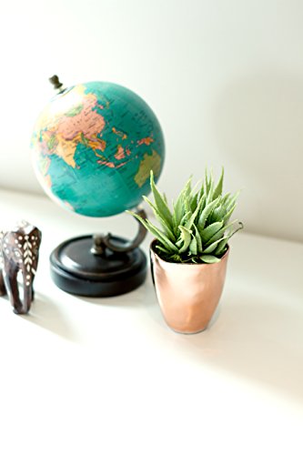 Mid century modern, light green artificial aloe succulent plant in copper rose gold 3 inch vase. This stunningly lifelike accent is perfect as an outdoor faux plant, or indoor for your office, business, or desk. This realistic, natural looking decor piece also belongs on a table, shelf, or nook. Dimensions: 6 inches tall x 4 inches wide.