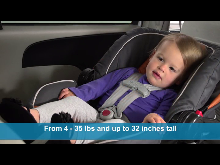 Rear-facing newborn car seat helps protect infants from 4 - 35 pounds; and up to 32", making it an excellent first car seat for baby