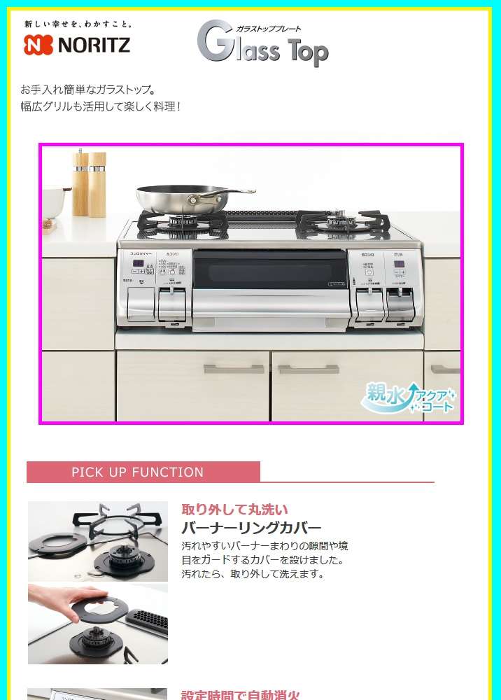 ●『Glass Top』お手入れ簡単なガラストップ。幅広グリルも活用して楽しく料理!!
