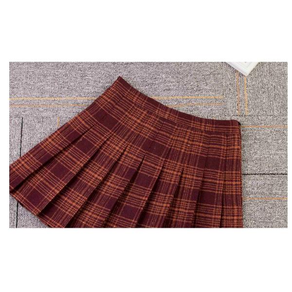 秋冬トレンドのウール素材のチェック柄ミニスカート。