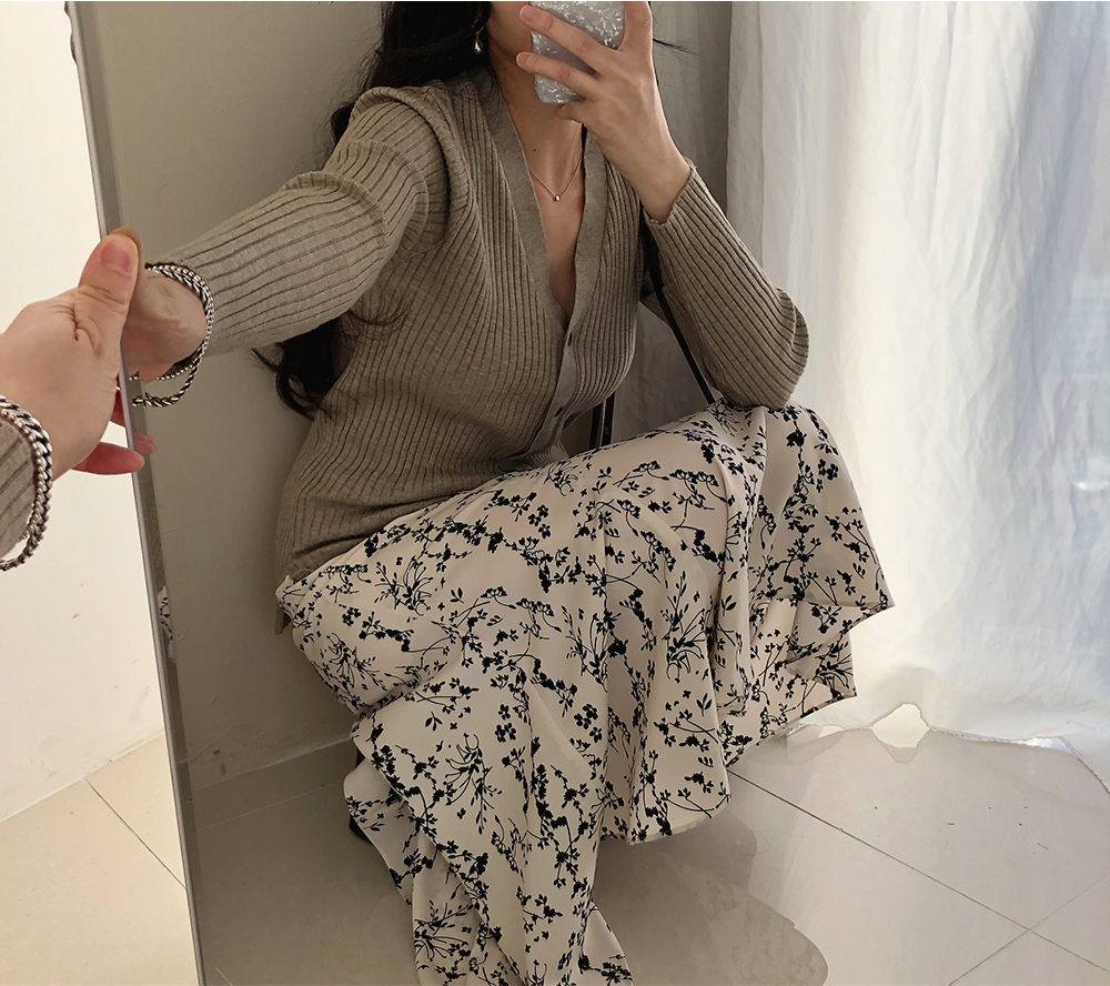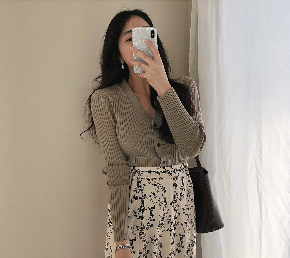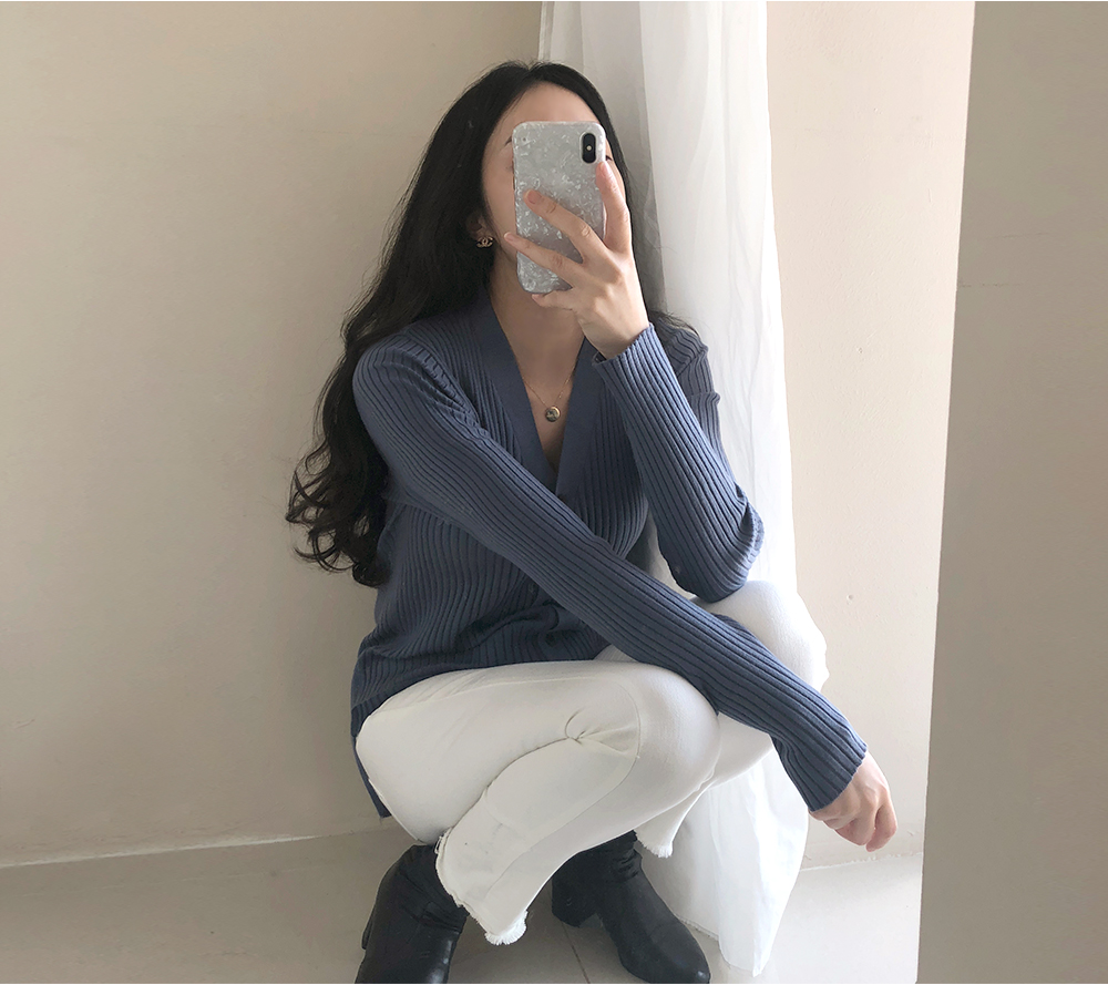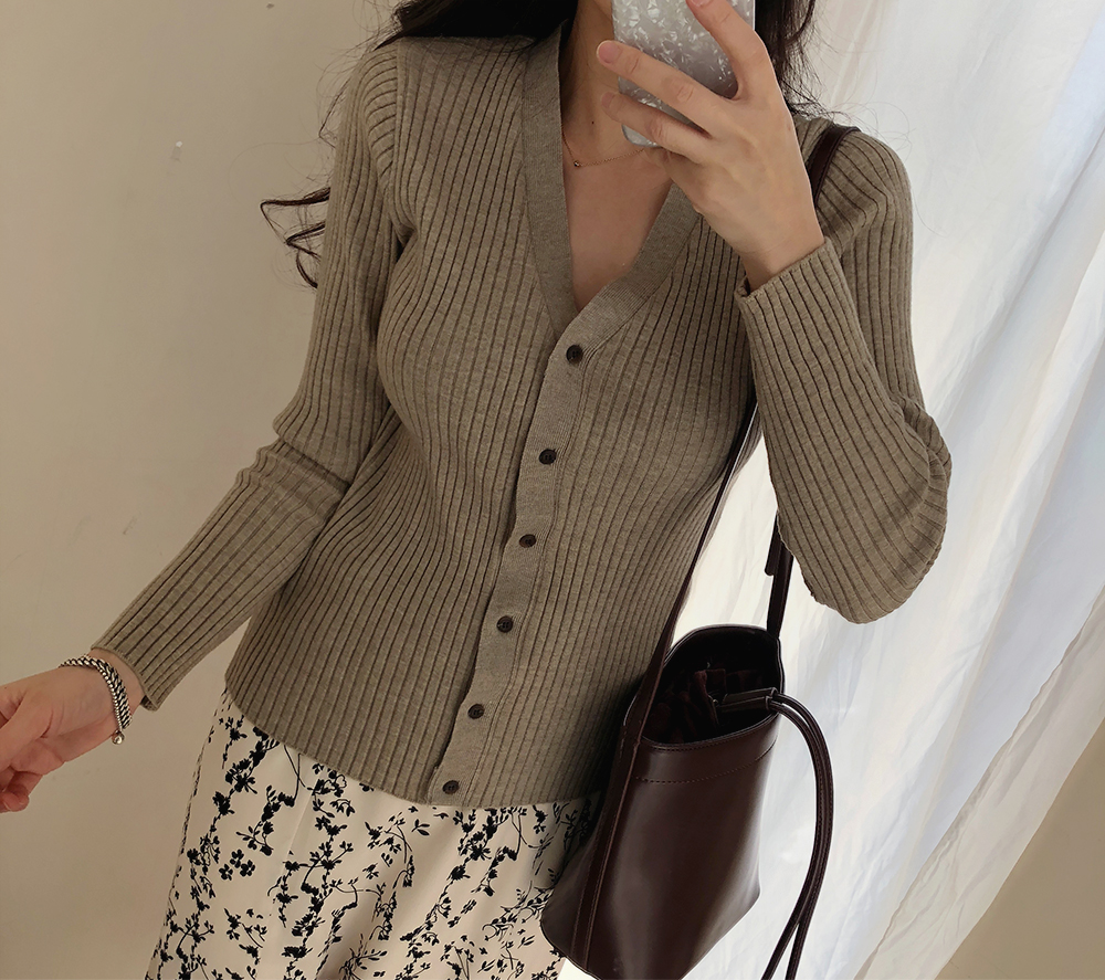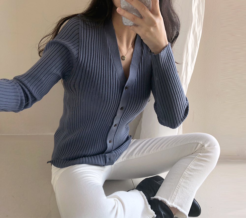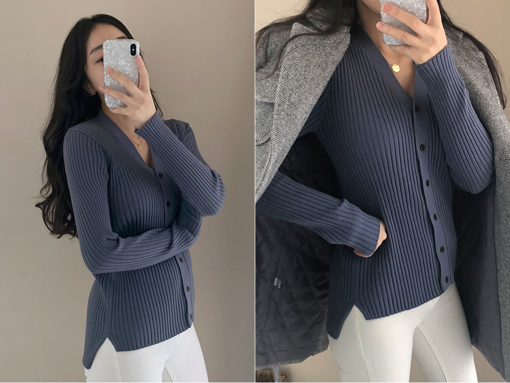 네츄럴 골지 슬림 브이넥 가디건