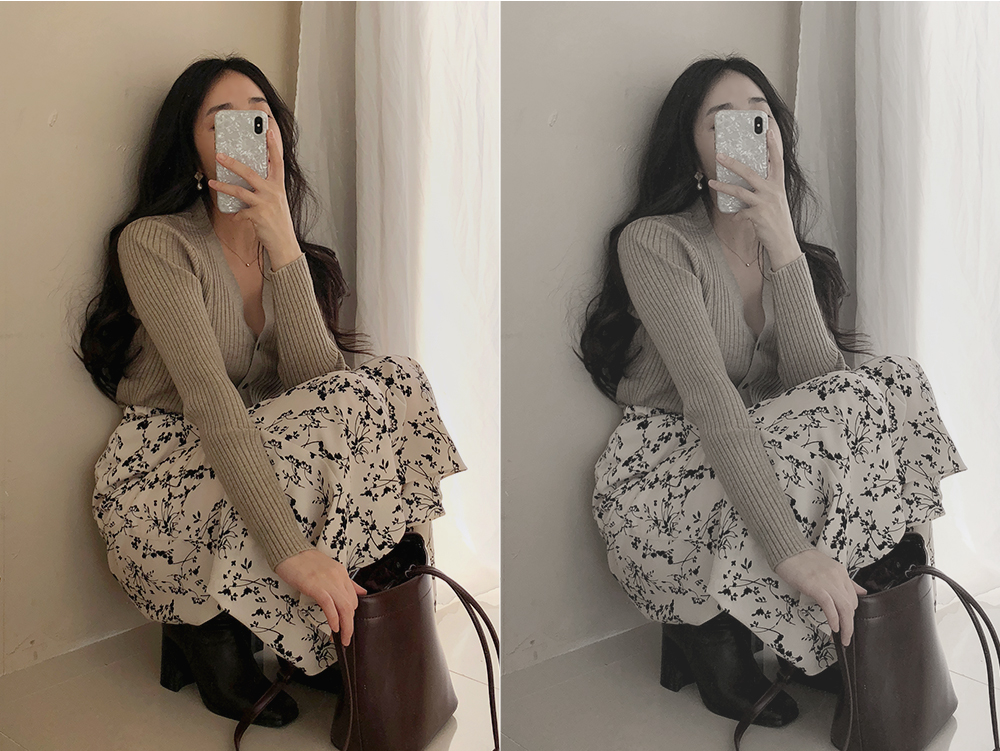 전체 세로 골지 짜임으로 쫀쫀하고 슬림하게 착용되는