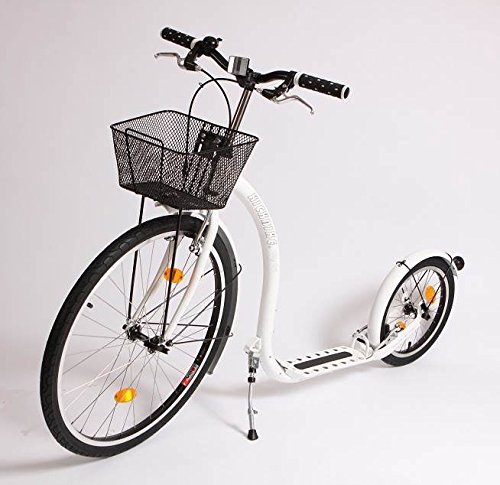 -. Feature : Heat treated oversized frame with reinforced welds for extra strength / Extended neck for added handle bar height / Adjustable height platform / Comfortable cruising style handlebars and handy basket / Assembly tools, basket, reflectors, and bell included