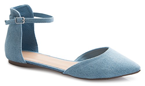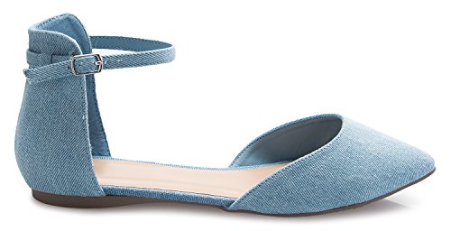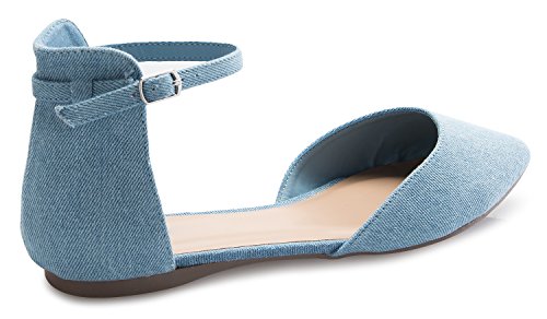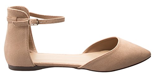 OLIVIA K Women's D'orsay Pointed Toe Fashion Ballet Flat Buckle Ankle Strap Closure