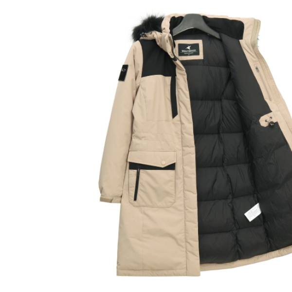 캐주얼한 스타일의 여성 인퀼팅 구스 헤비다운퀼팅선이 겉으로 드러나지 않아 일상복레저용 으로 착용하기 용이한 캐주얼 스타일허리 스트링 기능으로 다양한 FIT 조절 가능탈부착이 가능한 컬러 라쿤퍼 사용으로 보온성 강화함