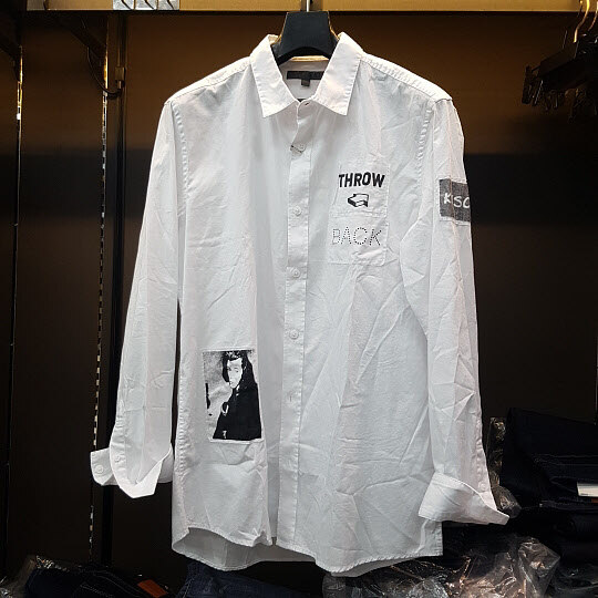 남자 기본핏 포켓화이트셔츠 앞쪽에 자수를넣어 포인트를 줘 스타일리쉬하게 입을수 있는 남자 기본 셔츠