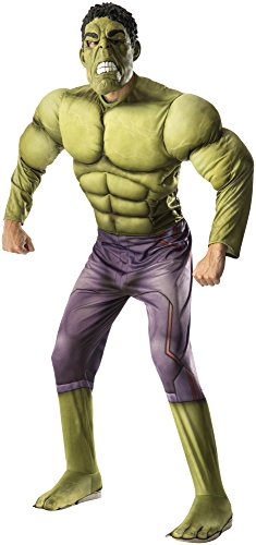 -. Binding : Apparel -. Brand : Rubie's -. ClothingSize : One Size -. Color : Green -. Department : mens -. Feature : Marvel's Avengers 2 officially licensed costume / Fiber filled muscle chest jumpsuit with attached shoe covers and mask / In Avengers 2 Age of Ultron, the Avengers must assemble to combat the threat of Ultron, join the team in a costume from Rubie's / Dress up is fun for all ages -. Genre : Superheroes/Villains -. IsAdultProduct : 0 -. Label : Rubies Costumes - Apparel -. Manufacturer : Rubies Costumes - Apparel -. MPN : R810290 -. NumberOfItems : 1 -. PackageQuantity : 1 -. PartNumber : R810290 -. ProductGroup : Apparel -. ProductTypeName : ADULT_COSTUME -. Publisher : Rubies Costumes - Apparel -. Size : One Size -. Studio : Rubies Costumes - Apparel -. Title : Rubie's Costume Co Men's Avengers 2 Age Of Ultron Adult Deluxe Hulk Costume