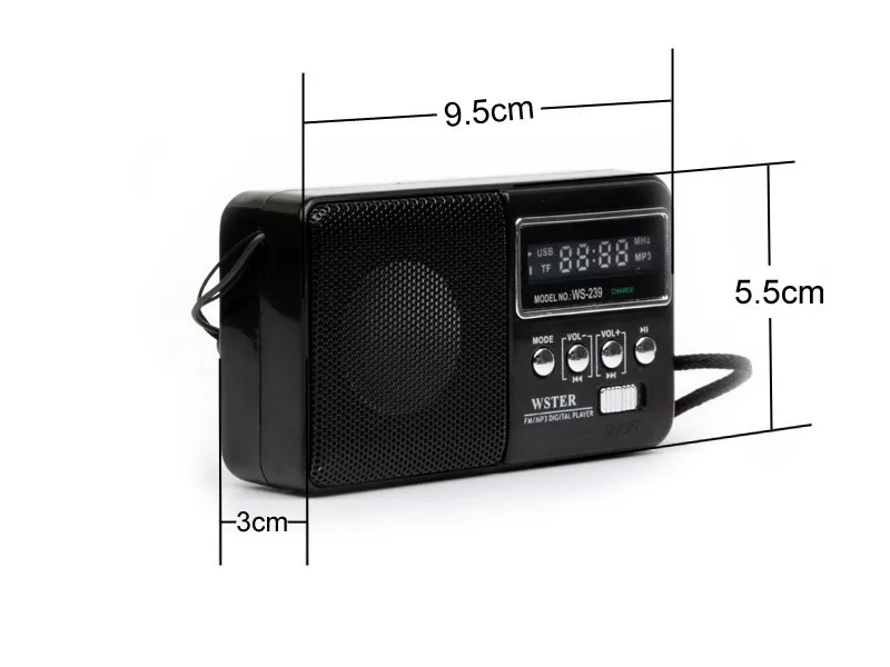 The Aged Best Mini Digital FM Radio MP3 With USB SD Card Built-in Speaker WS-239 New Fashion Portable Mini FM Radio Speaker
