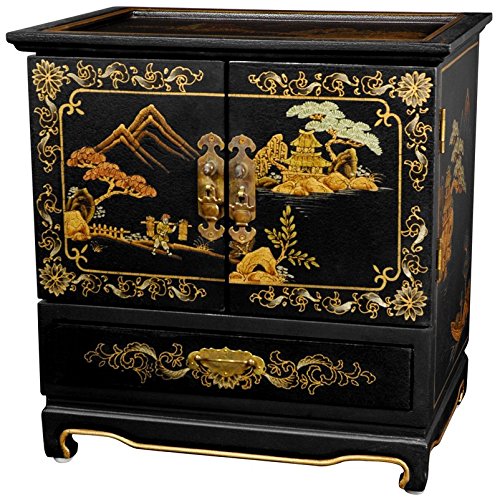 - Measures 16" w by 11.5" d by 16" h, classic ming style design miniature treasure cabinet
