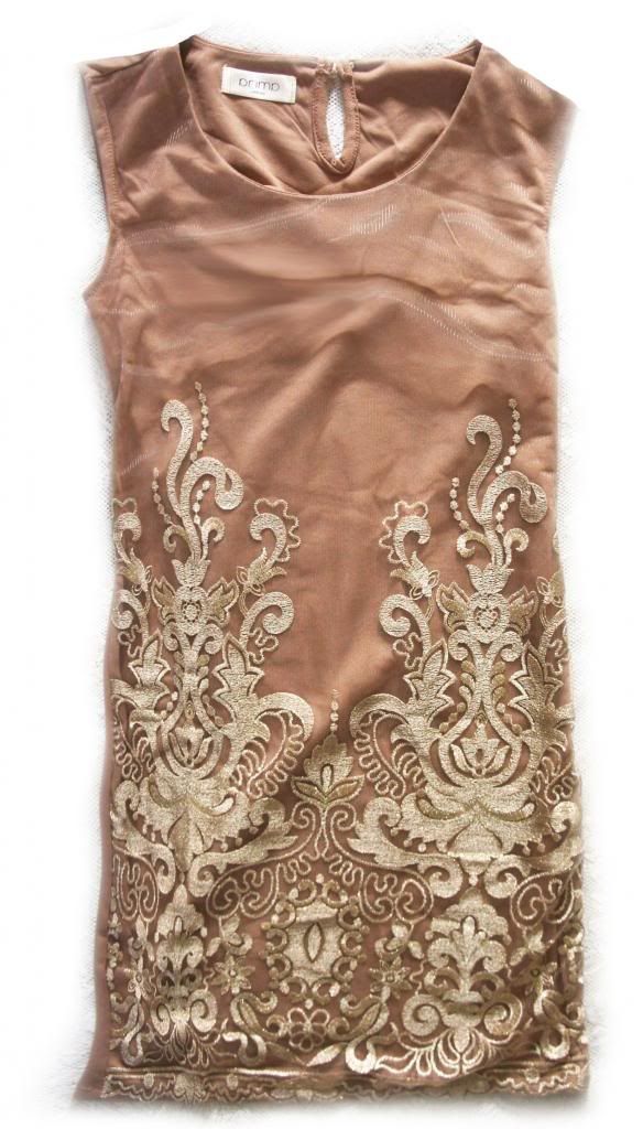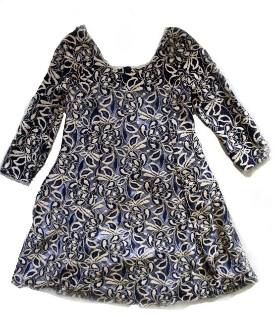 - Top of dress is cream printed with