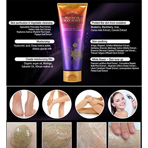 The 4-in-1 body scrub leaves your body moisturized after taking a shower even without a body lotion and refreshed with an attractive fragrance that lingers for a long time.
