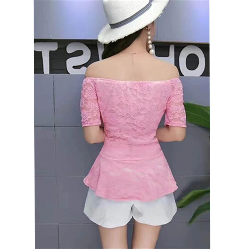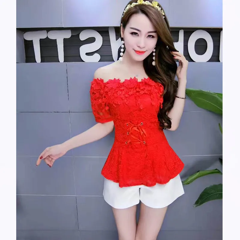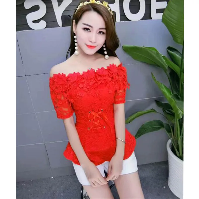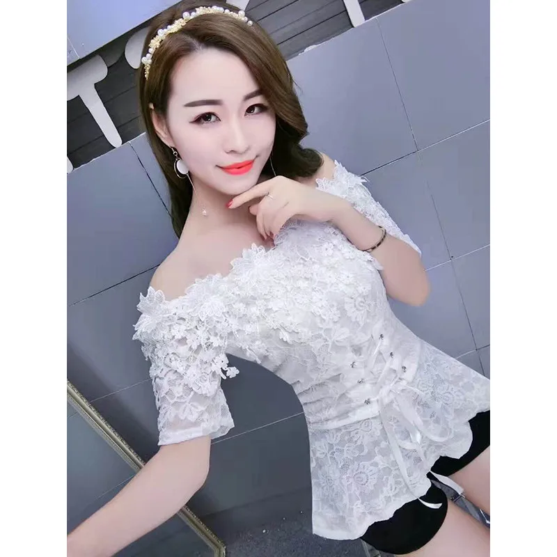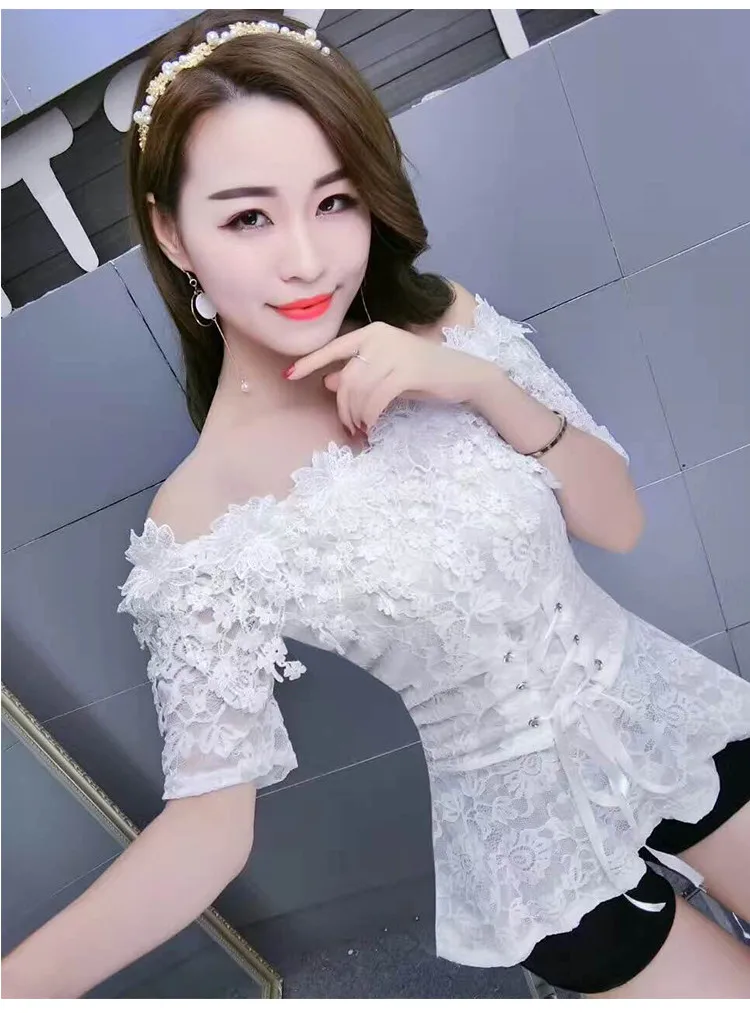 2018 New Floral Lace Blouse:Female Slash Neck Backless Shirts