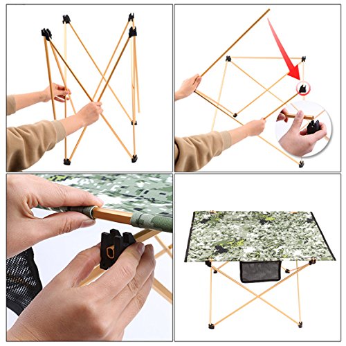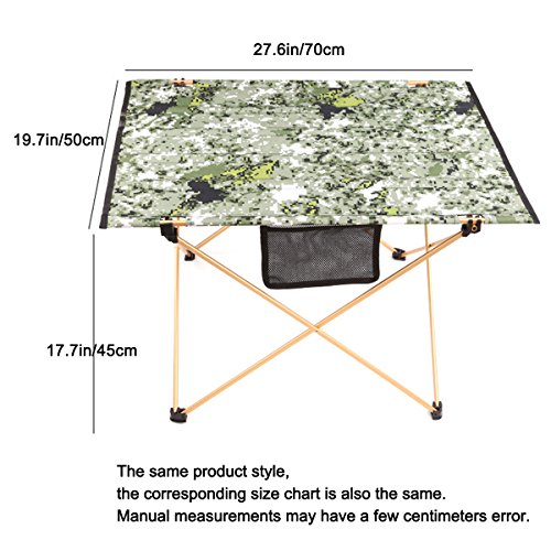 Studio : Jiele Publisher : Jiele Product Description Material: Aluminum alloy Oxford cloth Whether folding: Yes Aluminumalloy holder, ultra-light and durable. Extremelyeasily and fast set up and fold down. Can beput in a small and ultra-light bag, easy for carrying and storage. The small-sized table is weighted only 2.3 lb (1024g) Folding table Unfolded specifications: 27.6*19.7*17.7inch (70 *50 * 45cm) Sports Outdoor: Beach Self-driving picnic barbecue camping,fishing, travel, hiking, garden, Mountaineering,etc.