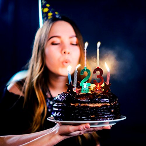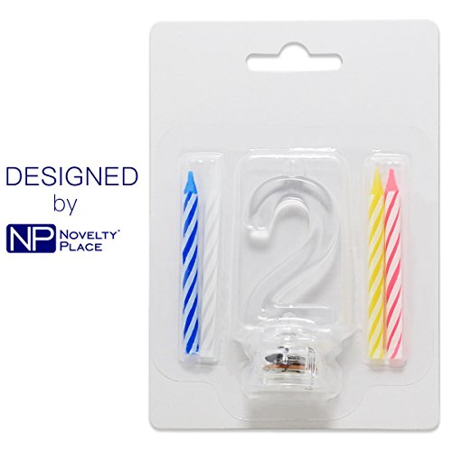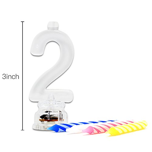 Multicolor Flashing Number Candle Set, Novelty Place Color Changing LED Birthday Cake Topper with 4 Wax Candles (Number 2)