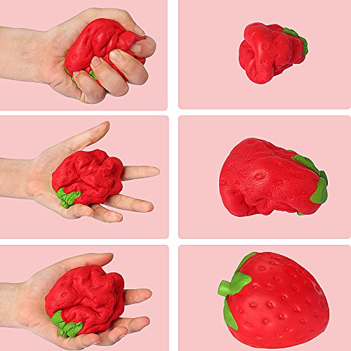 Squishy Strawberry, Outee 2PCS 4.6" Squishies Slow Rising Strawberry Toy Jumbo Scented Squishies Strawberry Kawaii Squishy Strawberry Scented Material: Polyurethane Foam (PU Foam) Package included: 2 * 4.6" squishable strawberry