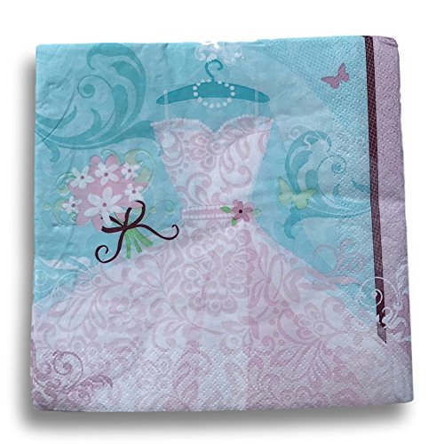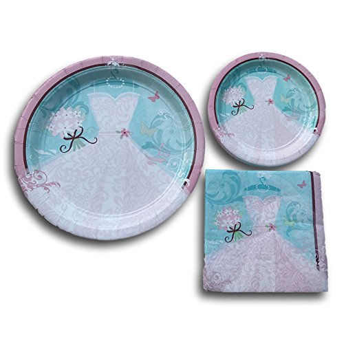 Bridal Wedding Shower Sturdy Paper Plates and Napkins Deluxe Party Pack Bundle - Tableware set includes Dinner Plates - Dessert Plates and Napkins