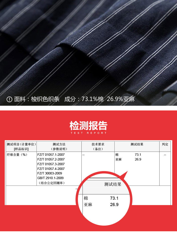 | 面 料:73.1% 棉 26.9%亚麻颜 色:藏青 |