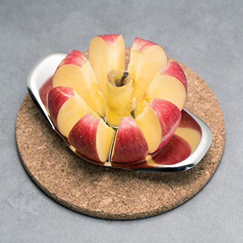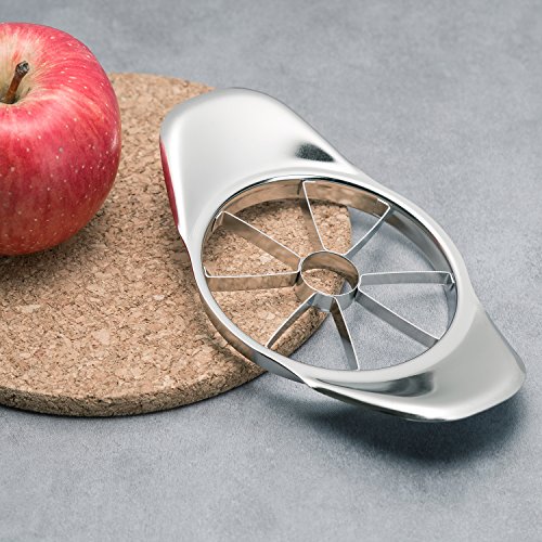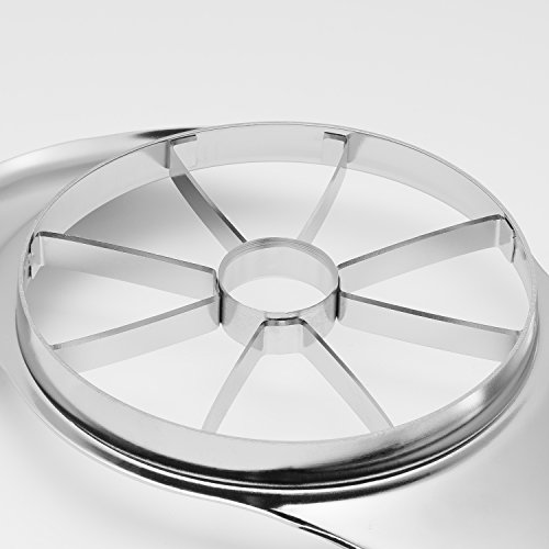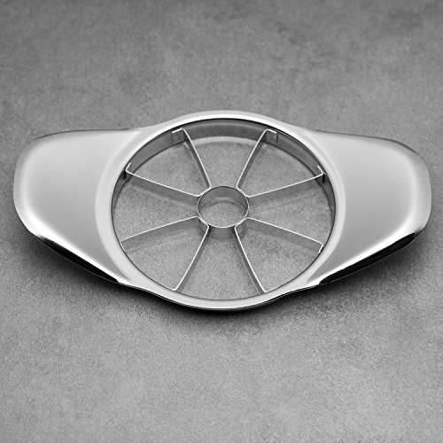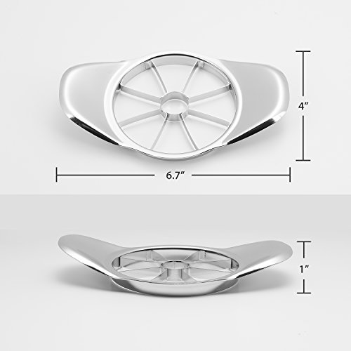 6.9”?Apple corer peeler and slicer all in one - Stainless steel fruit cutter For ?all round fruit - With 301 stainless steel?Cutter exported food standard?Sturdy blade?and 201 stainless steel oversize handle, the fruit can be divided?into six perfect pieces, it’s?suitable for all kinds of round fruit.