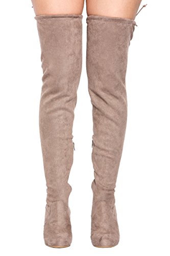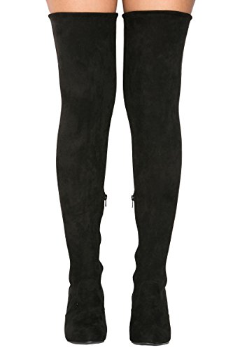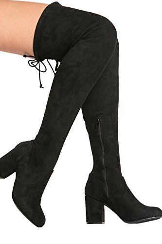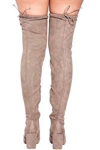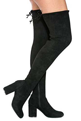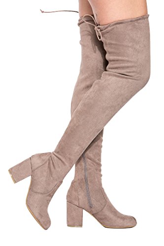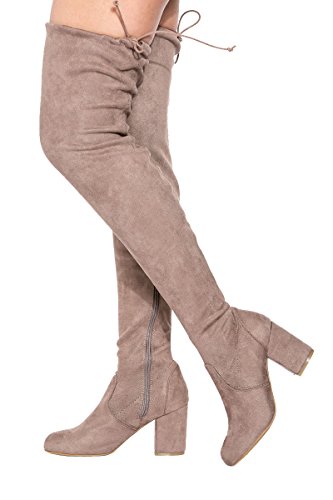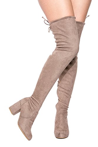 Binding : Apparel Product Description These lovely over-the-knee boots feature a slightly stretched vegan suede, wrapped blocked heel, round toe silhouette, and a drawstring collar that ties at the back for custom fit. Finished with pull on construction with a partial side zipper closure and a lightly cushioned insole for comfort. 0