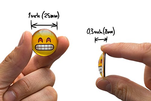 - DISC MAGNETS WITH 3D DESIGN: The emoji fridge magnets are round, but they are not flat. Each one of the 12 decorative magnets is 0.3 inches (8mm) thick, so they look like they are 3D! As for their diameter, it is 1 inch (25mm) long, so refrigerator magnets are a bit bigger that your thumb.