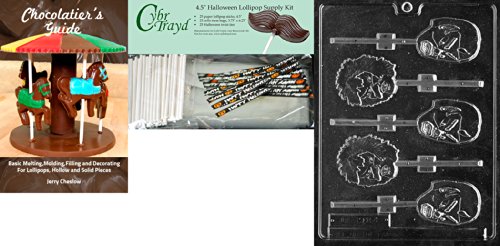 Cybrtrayd "Monsters Lolly" Chocolate Mold with Chocolatier's Bundle, Includes 25 Lollipop Sticks and 25 Cello Bags