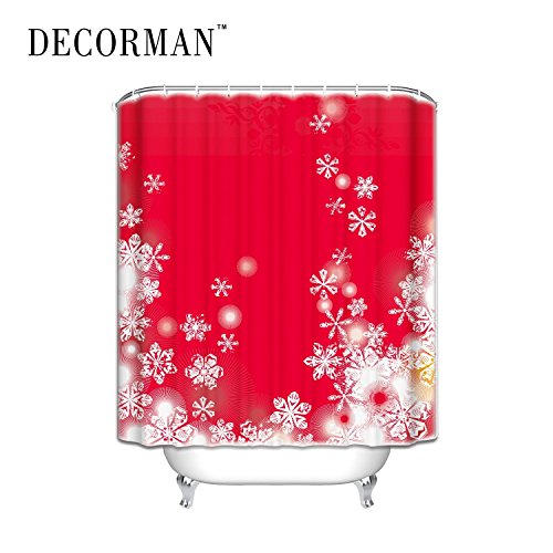 Prime Leader Crystalline Snowflakes on Red Background WaterProof Polyester Fabric Shower Curtain Bath Decor Curtain,60"(w) x 72"(h)